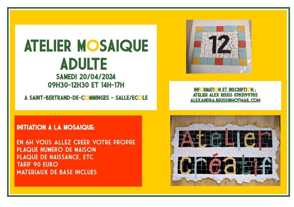 ATELIERS CRÉATIFS /VACANCES DE PÂQUES À SAINT-BERTRAND-DE-COMMINGES (31) Publié le 24 mars 2024 par atelier ALEX REUSS Similaire